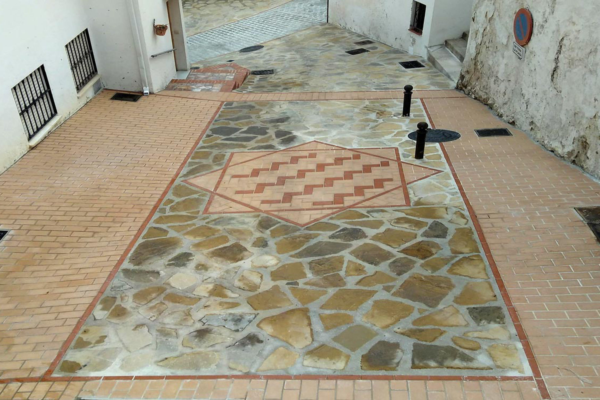 Un proyecto pequeño pero de gran complejidad tecnica. Esta reurbanizacion de calle ha requerido la resolucion de varios problemas tecnicos en un espacion reducido. Niveles distintos, pendiente desigual con pavimentaciones diferentes y mosaicos son algunas de las ejecuciones que A7GR ha resuelto con un acbado perfecto.